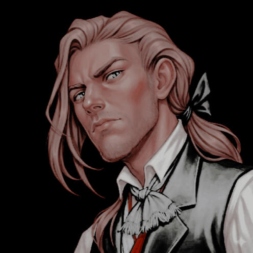 The White Balverine of Millfields. Eighty years old. Alpha male.Turned at forty‑one by the previous White Balverine, Hickory has kept that same form ever since. Tall, muscular, blond, scarred and chiselled-featured. Arabelle Prideaux found him as a wounded young man in the woods and brought him to the family shack in Millfields. There he became attached to their daughter, Quartette, who was fourteen at the time. As they grew close, she confronted him about the disappearances and the strange behaviour she had begun to notice over the year. He told her the truth. He was a balverine, and he had been near the Dark Sanctum when her mother found him after a territorial fight with Silverpine’s pack, who'd left him for dead and taken his pack.Quartette refused to abandon him. Determined to help him find a cure after hearing his tale of being a blacksmith and horseminder years afore, she stayed at his side and earned his loyalty through every means she could manage, keeping him hidden from the master of the estate, Reaver.When Reaver sent Quartette away and the Prideaux family began to fall apart, Hickory returned to the woodlands, heartbroken to lose them. The local balverines accepted him and formed a family unit around him, naming him their Alpha. From there he began infiltrating Lakeview Manor to learn what had happened to the girl he considered his own. Reaver eventually discovered his presence and his connection to the Prideauxs, and ordered him hunted. Hickory was forced to abandon his search.Quartette’s return to Millfields brought him back to her side. He declared her his mistress and took on the roles she needed most. Steward, butler, liveryboy and lover. He remains the Alpha of the balverines, and through him, Quartette holds immunity and a powerful pack that protects her without question.—His art here is drawn by me, coloured by me, and shaded with Gemini.